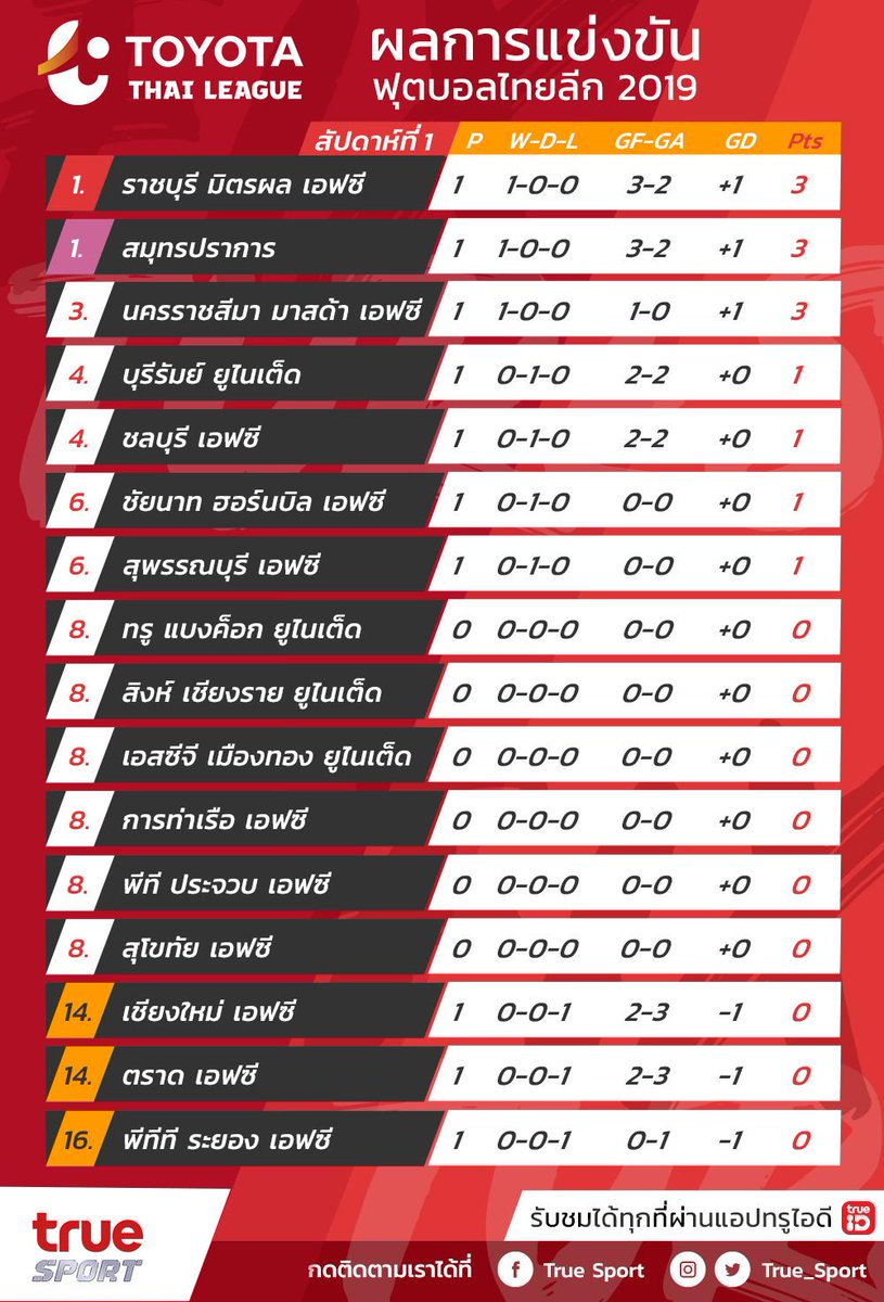 Truesports Pa Twitter อ พเดทตารางคะแนนการแข งข นฟ ตบอล โตโยต าไทยล ก น ดเป ดสนามฤด กาล 2019 ซ งม การแข งข นไปแล วท งส น 5 ค ด วยก น ท มไหนจะอย อ นด บท เท าไรไปด ก น Tl Thaileague Truevisions Truesport Trueid True4u Https T Co F7vdmgpmoj
